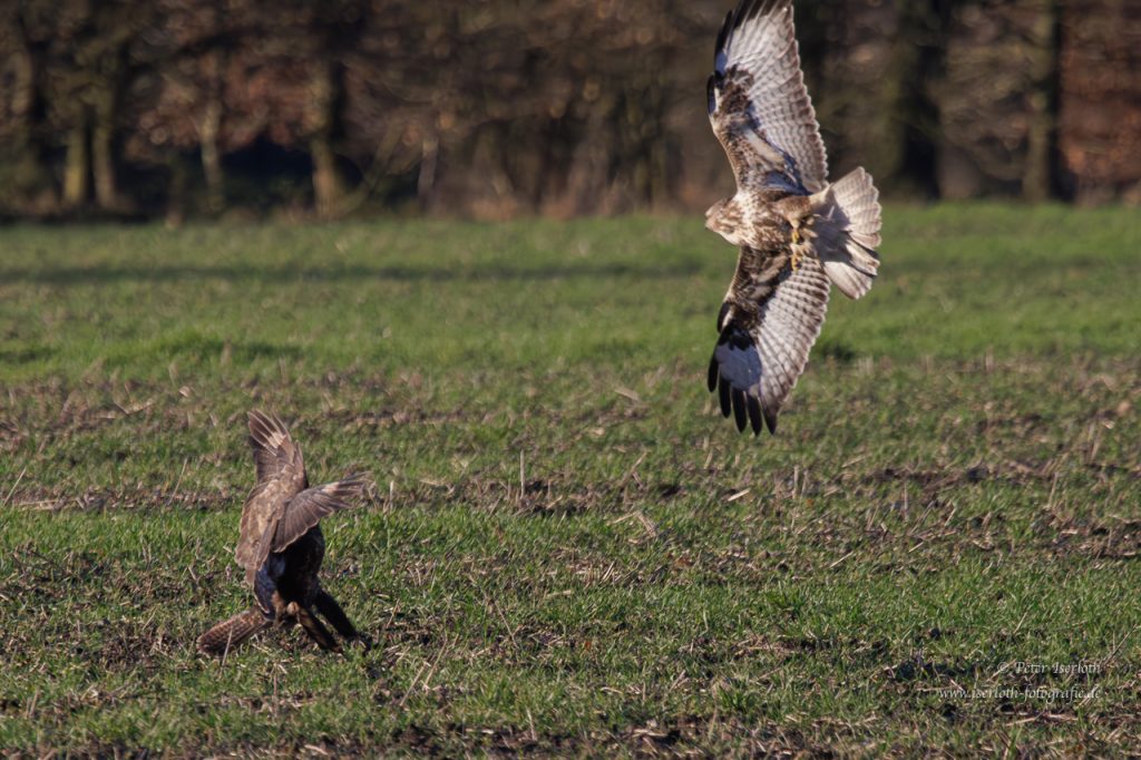 Gerne sind Greifvögel und im speziellen der Mäusebussard aber auch zu Fuß unterwegs. Sehr oft habe ich ihn schon hüpfend über Wiesen und Felder erwischt.